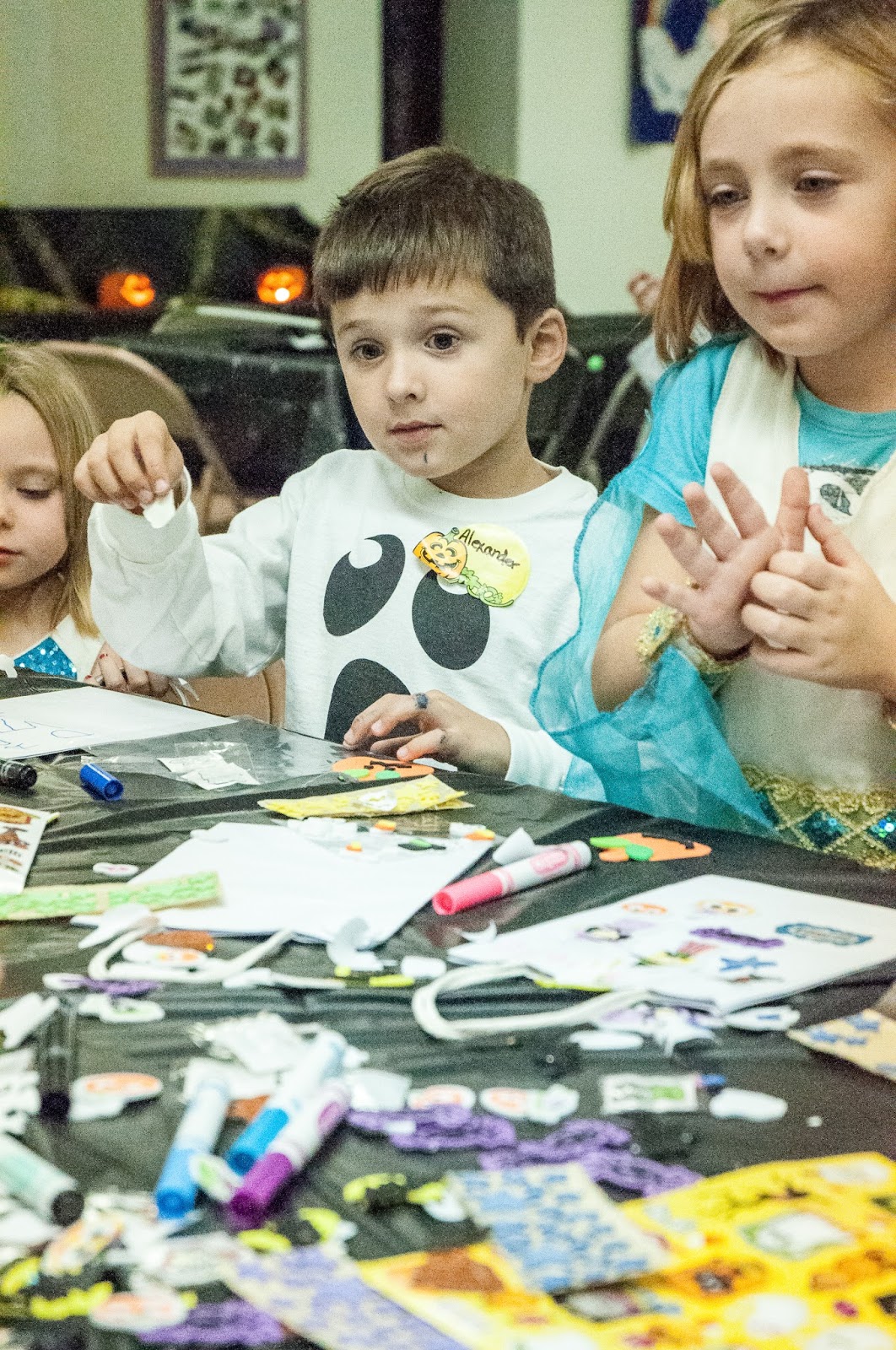 This year's VBS Halloween Party had about 1/2 or 2/3 fewer kiddos than last years. I felt a little bad for the organizers, but it was a much nicer and less hectic event this time. Much more pleasant. The kids had a great time playing with the decorations and dancing. And, of course, the bags of candy they brought home after the trick or treating fun!